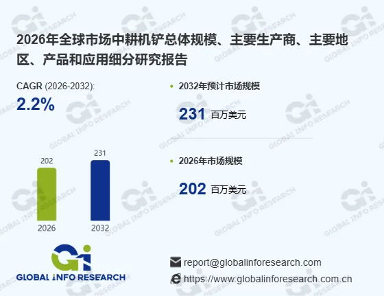 当前,全球中耕机铲市场保持温和增长。据GIR(Global Info Research)调研,2025年全球该市场收入约为1.98亿美元,预计到2032年将增至2.31亿美元,2026至2032年期间年复合增长率(CAGR)为2.2%。这一稳健但缓慢的增长,反映出传统农业装备市场的成熟性以及对耐用、高效农具的持续需求。
