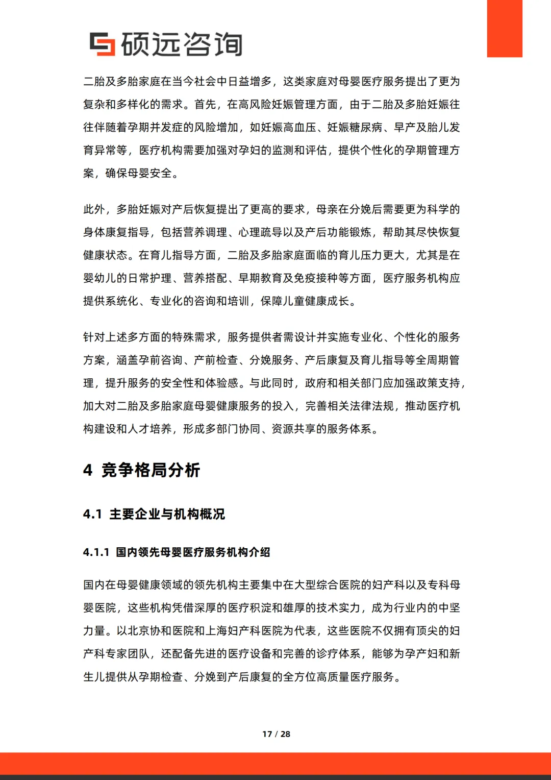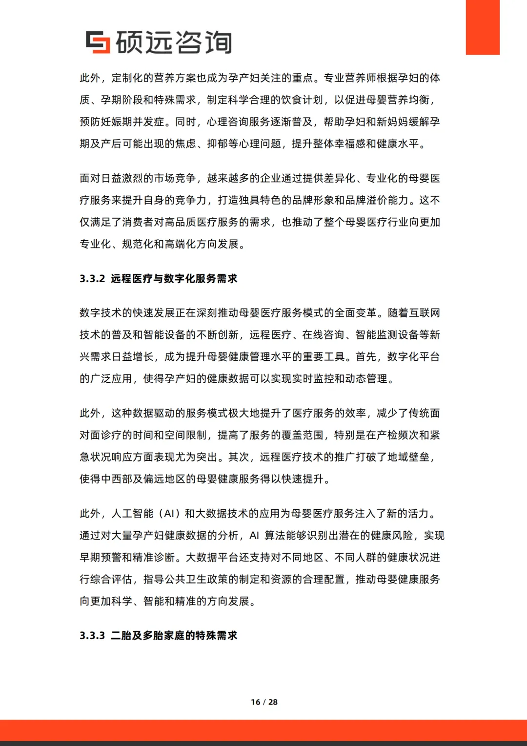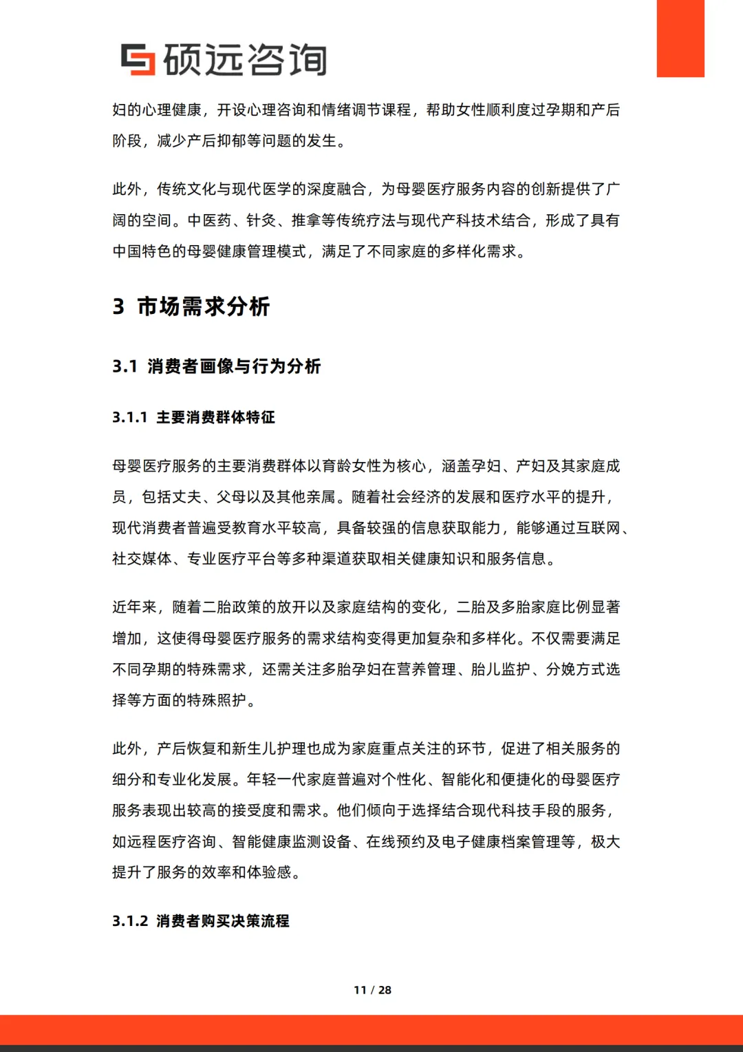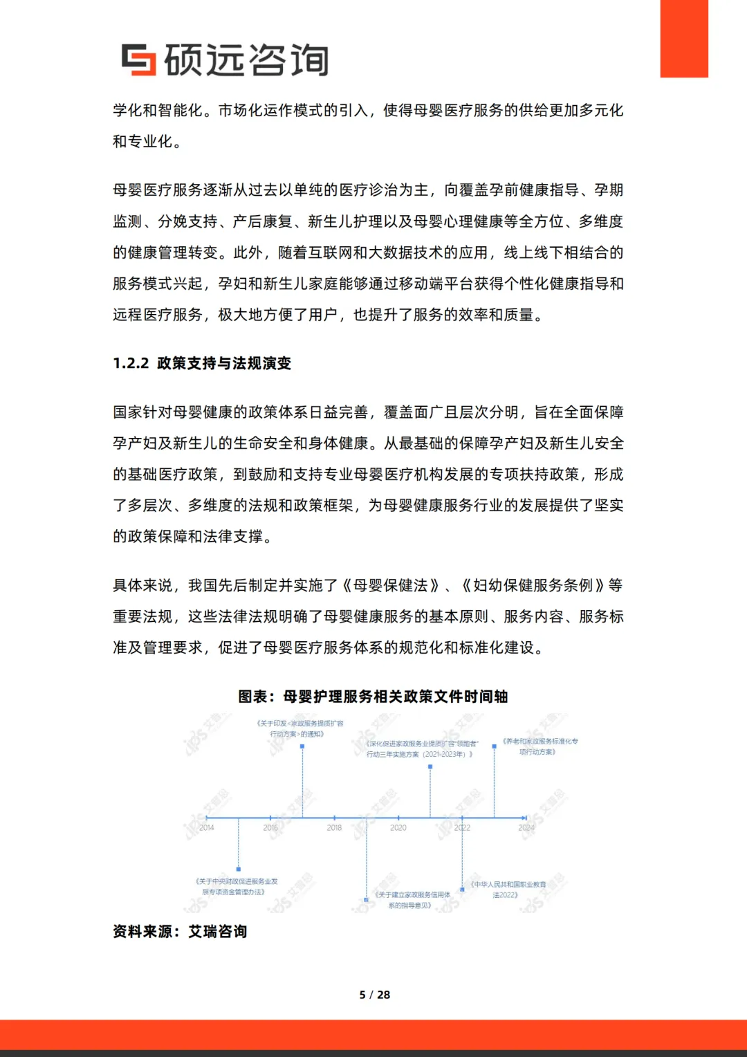 市场环境层面,宏观经济增长与医保体系完善增强了消费者支付能力;政策端《母婴保健法》等法规构建了完善的制度框架,推动服务规范化与资源均衡配置;社会文化方面,科学育儿理念普及,年轻父母对个性化、智能化服务需求凸显。