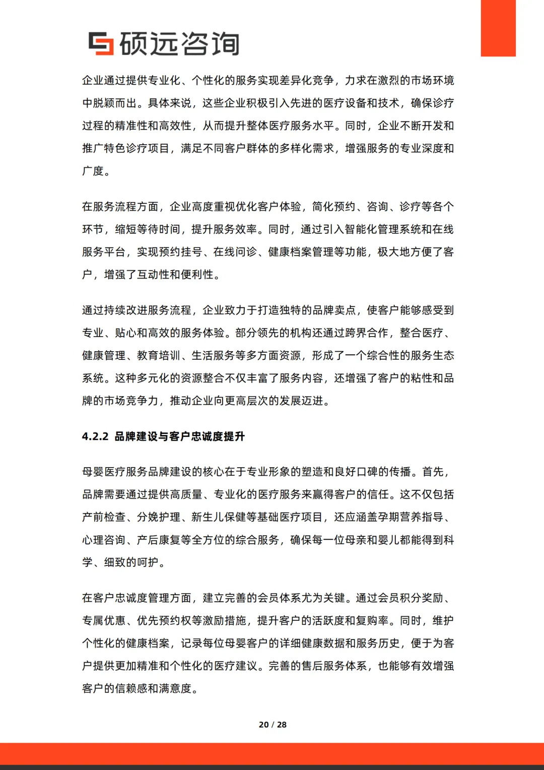 竞争格局上,公立医院妇产科为核心力量,民营机构与互联网医疗平台快速崛起,外资企业凭借国际经验占据高端市场。行业竞争聚焦服务差异化、品牌建设与数字化转型,核心竞争力体现在医疗技术、服务质量、人才储备等方面。
