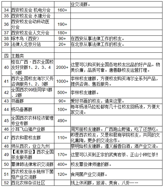 西农校友 行业群、专题群 情况汇总表
