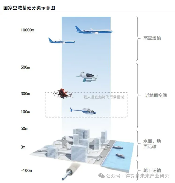 • 低空航空器:包括直升机、无人机、eVTOL。根据运行高度划分:120m以下主要包括消费级无人机,120m—300m主要包括行业应用无人机,300m-1000m主要包括直升机/eVTOL。