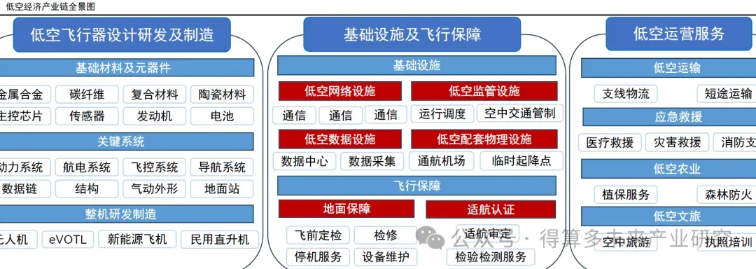 ü 综合服务:支持和辅助低空经济发展的各种服务型产业