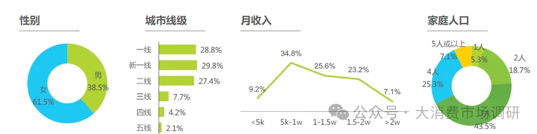 家庭状态多为已婚育,3-4人的家庭;也有两成未婚育的同居家庭或独居家庭。