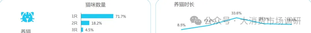 在本次调研中,在配额的控制下,养猫和养狗的人群呈现较为平均的分布。养猫需求的空间更小,相比起养狗人群,养2只以上猫的人更多。各位宠主对养宠已是较为熟悉的阶段,多数人有1年以上的养宠经验。