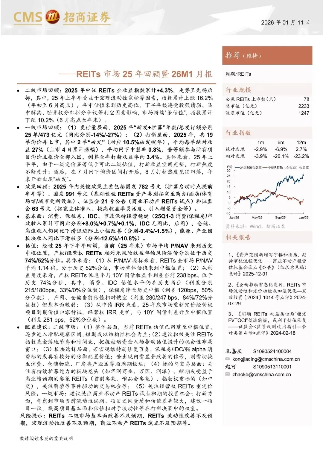 REITs行业市场25年回顾暨26M1月报:把握被动资金即将入场的布局机会-260111-招商证券-16页