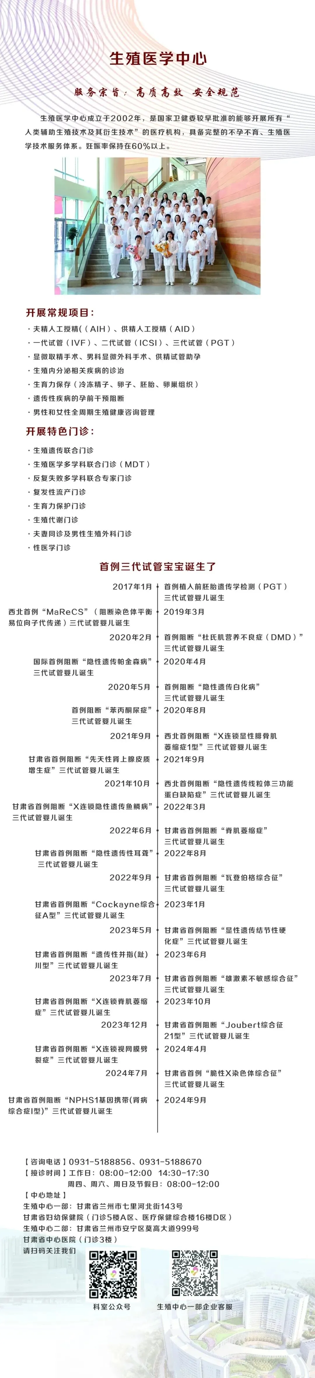 马莹 医学博士、副主任医师、硕士研究生导师、陇原青年人才。中国医师协会医学遗传医师分会委员,中国优生优育协会孕育与生殖专业委员会委员,中国优生优育协会生育力保护与修复专委会委员,甘肃省医学会遗传学青年委员会委员,甘肃省生物工程学会生命组学专委会秘书长,甘肃省基因组学行业技术中心健康科普专家。毕业于兰州大学,获得了生殖医学硕士和医学遗传学博士学位。从事生殖医学工作16年,多年来坚持以患者为中心,致力于为患者提供个性化治疗方案。擅长夫妻备孕优生咨询,不孕不育夫妻同诊同治,辅助生殖技术,复发流产和保胎,妇科内分泌疾病,月经不调,子宫内膜异位症,胚胎停育、复发流产、疑难病例的个体化诊疗,不良孕产史的生殖遗传咨询,染色体病和基因病的生育咨询,特别是有家族遗传病拟生育者的遗传咨询以及男性少弱畸形精子症的个体化治疗。主持国家自然科学基金1项,甘肃省科技厅重点研发计划1项,陇原青年创新创业人才项目1项,参与国家自然科学基金1项,甘肃省自然科学基金2项,在生殖医学一区期刊Fertility and Sterility 等学术期刊发表学术论文多篇。