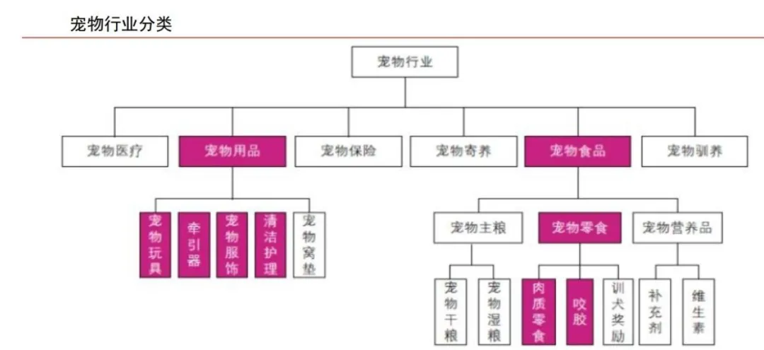 宠物行业涉及到宠物食品、宠物用品、宠物医疗和宠物服务等行业。宠物行业是指一切围绕着"宠物"而形成的产业链,涵盖宠物的繁殖与宠物交易,以及围绕宠物消费的商品和服务,包括宠物食品、宠物用品、宠物医疗和宠物服务等,其中宠物服务包括宠物美容、宠物寄养、宠物训练、宠物摄影等多种服务。目前,我国宠物行业逐渐发展出覆盖宠物衣食住行、生老病死的全产业链。
