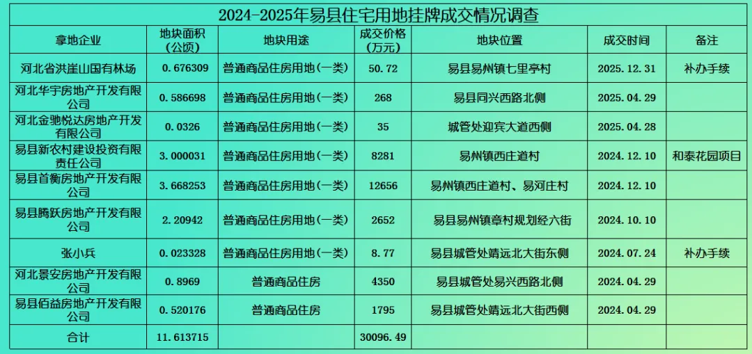 (2024-2025易县住宅用地挂牌成交情况调查)