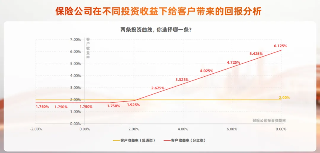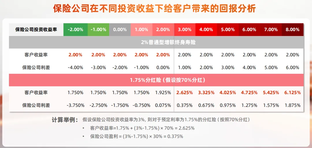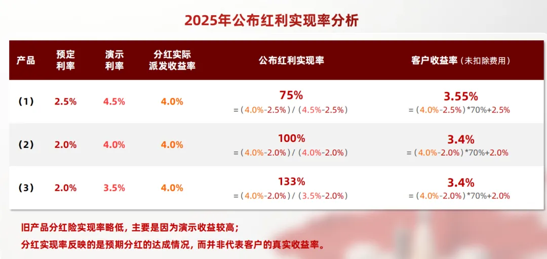 以3.2%的客户收益率计算,当时分红险预定利率2.5%,监管将分红险产品的红利实现率限制在50%的水平。