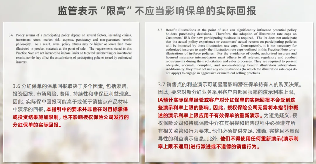 这些演示利率上限旨在防止过于激进的投资假设,促进授权保险公司之间的健康竞争,并推动保险业的可持续发展。这就是本实务指引的目的。