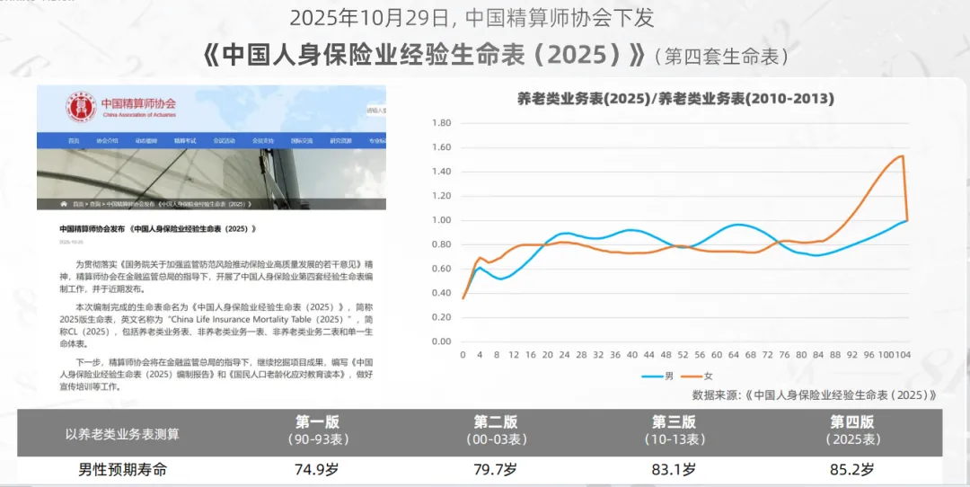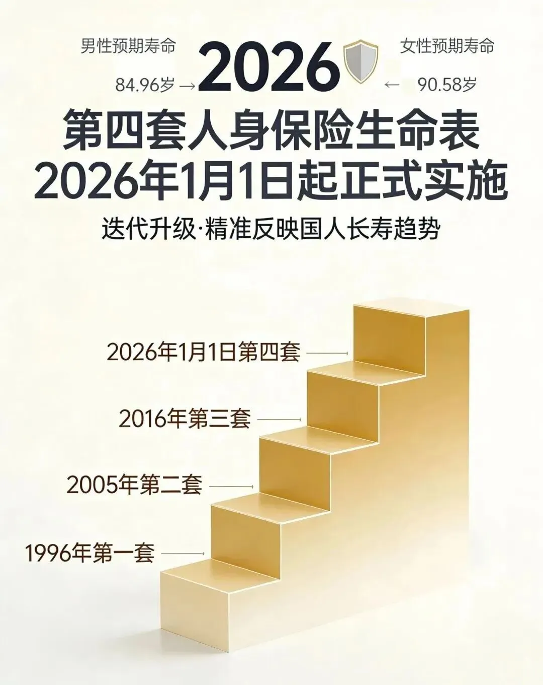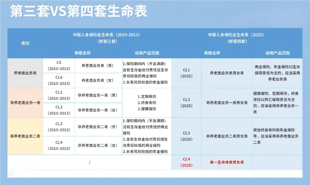 《中国人身保险业经验生命表(2025)》(以下称简称“第四套生命表”)将于2026年1月1日起正式启用。