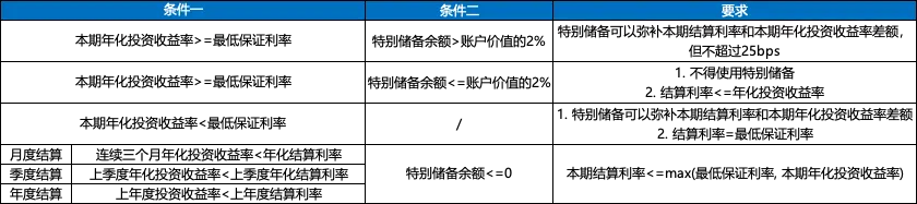 第五,也是最重要的,结算利率必须以真实投资收益为基础,建立明确的盈余分配规则,并据此提取特别储备(特储),特储和实际投资收益将影响结算利率的确定;
