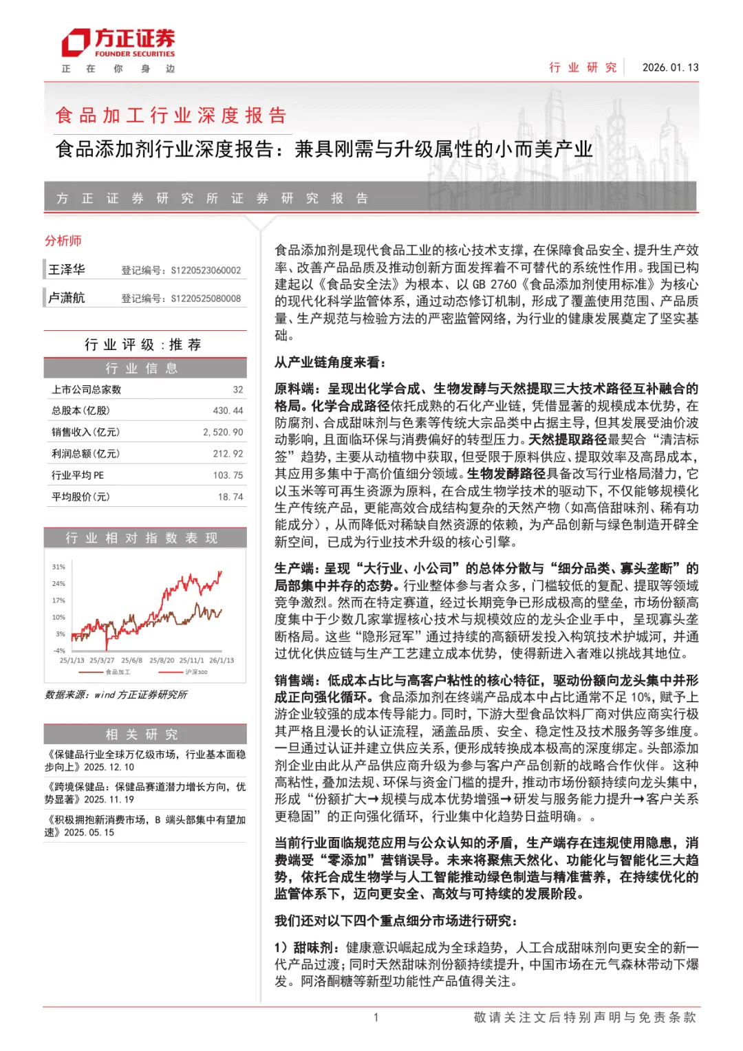 食品添加剂行业深度报告:兼具刚需与升级属性的小而美产业-方正证券