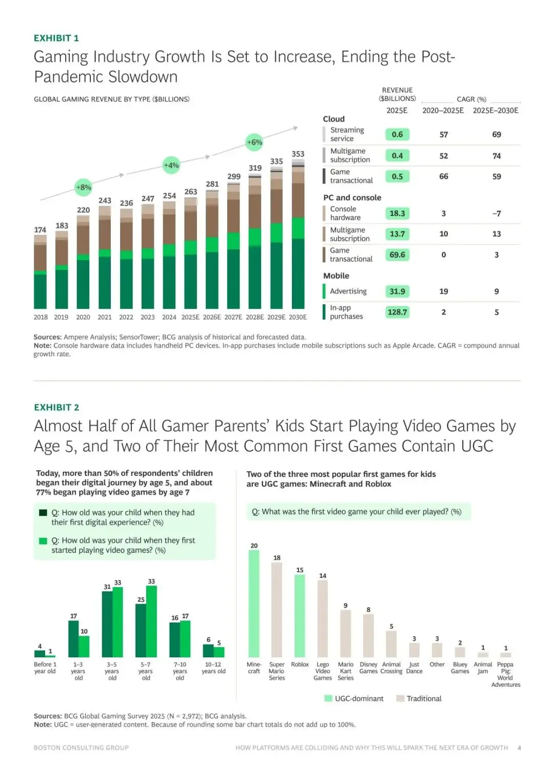 玩家行为:55%的玩家游戏时间增加;44%的家长让孩子在 5岁前 开始玩游戏(常玩UGC游戏如《我的世界》《Roblox》)。