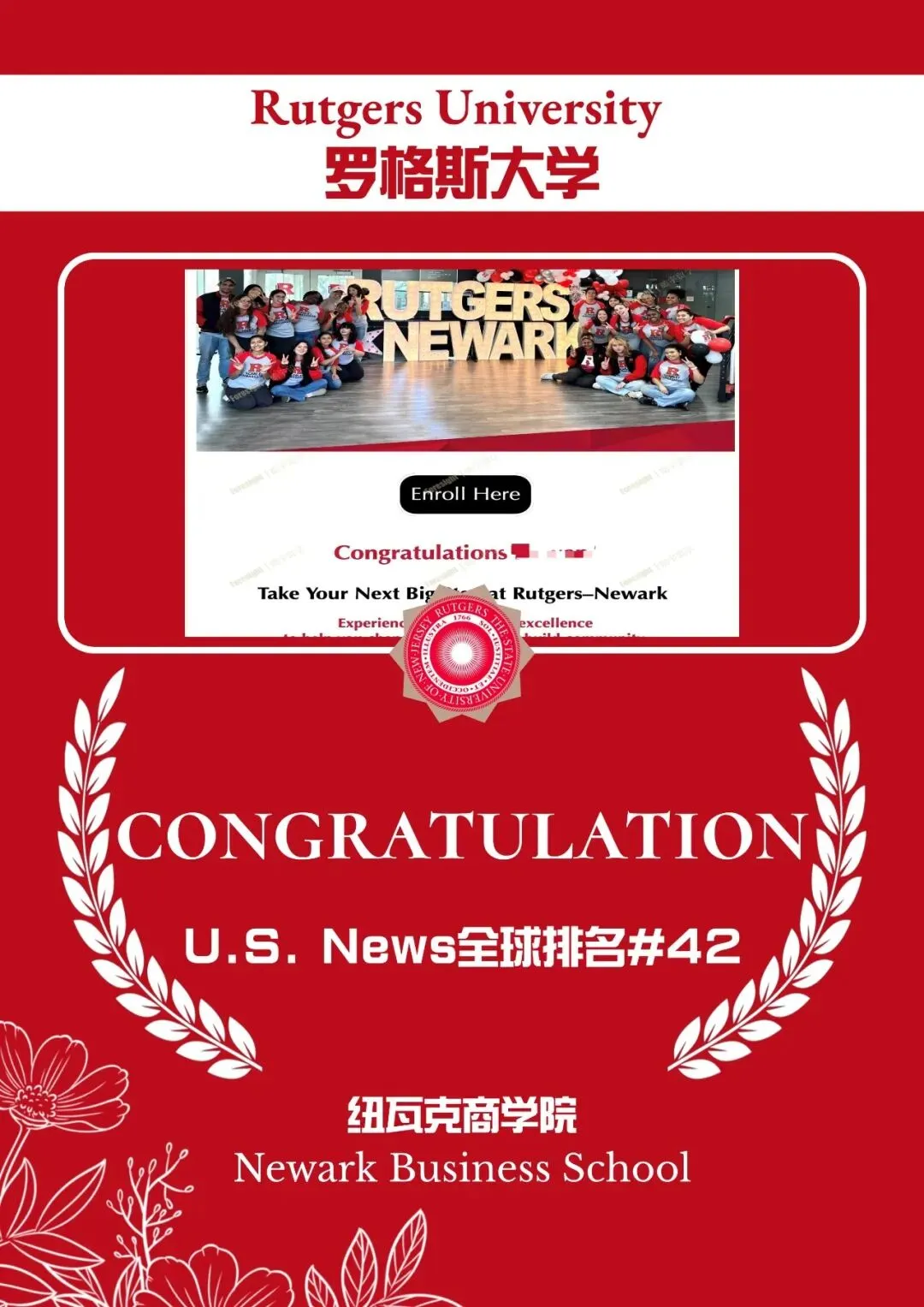 衷心祝贺Z同学喜获罗格斯大学纽瓦克商学院录取!愿你在纽约都会区的商业心脏中,精准解析全球经济的脉搏与资本流向,在供应链网络与量化模型之间优化决策,成长为既精通风险定价与市场博弈逻辑,又能驾驭前沿数据智能的未来商业领袖!