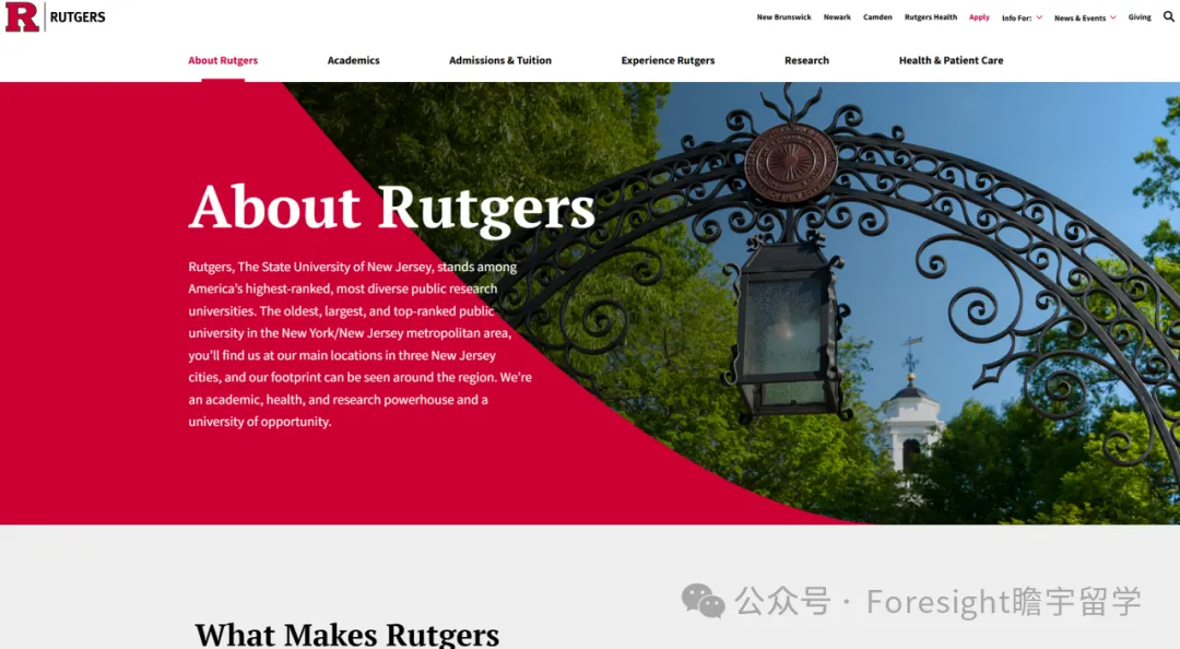罗格斯大学是美国新泽西州规模最大的公立研究型大学,也是美国历史最悠久的第八所高等学府和“公立常春藤”之一