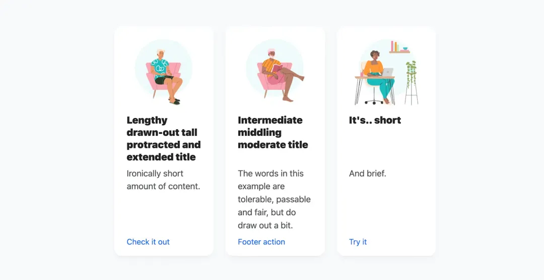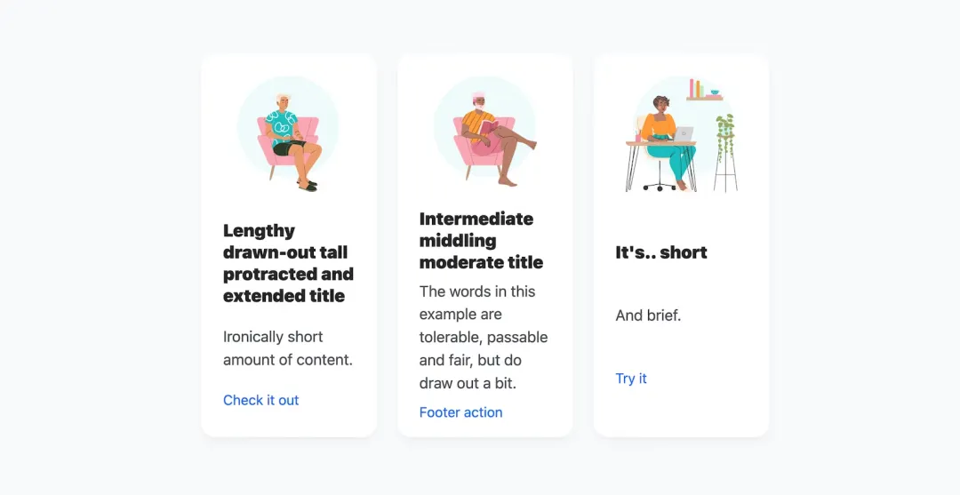你会发现,标题字数不一样,内容字数不一样,导致底部很难对齐。