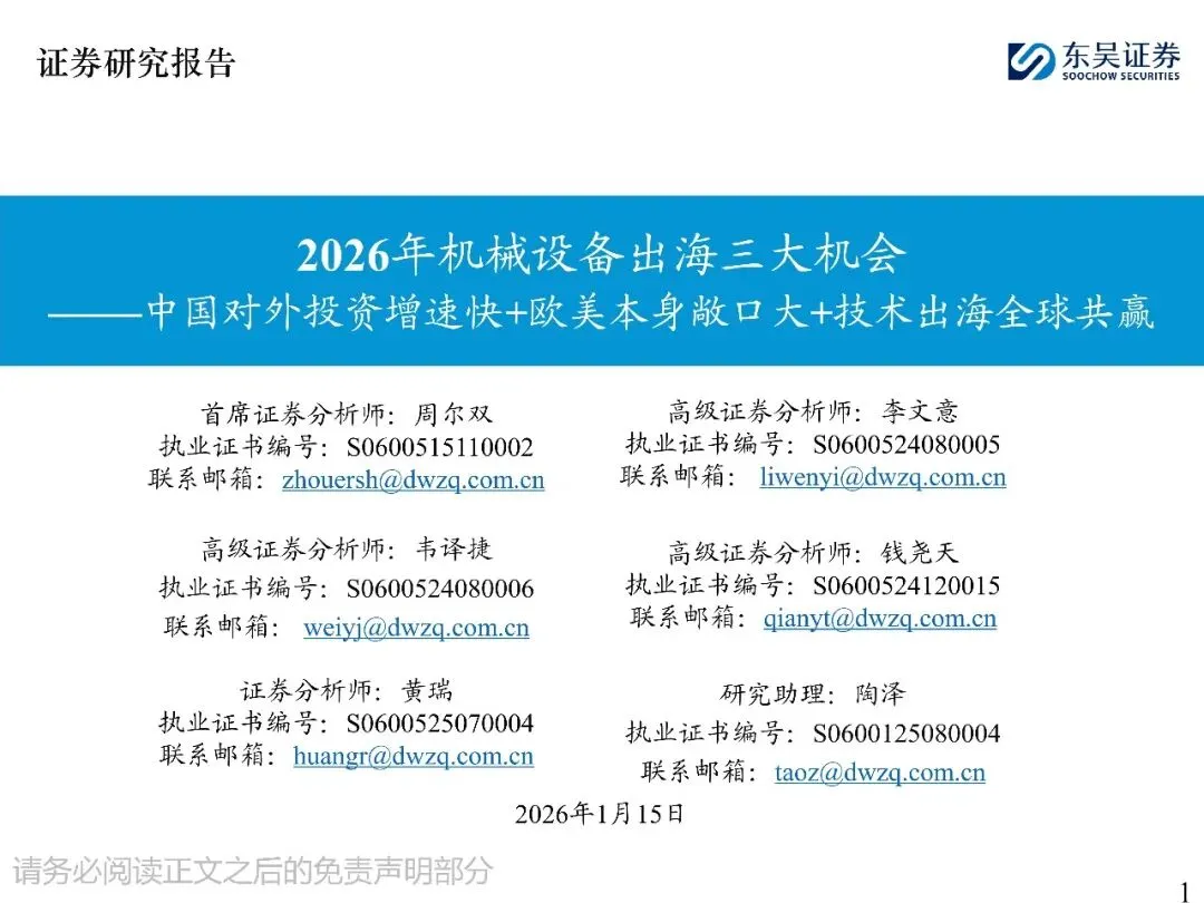 2026年机械设备行业出海三大机会:中国对外投资增速快+欧美本身敞口+技术出海全球共赢-260115-东吴证券-123页