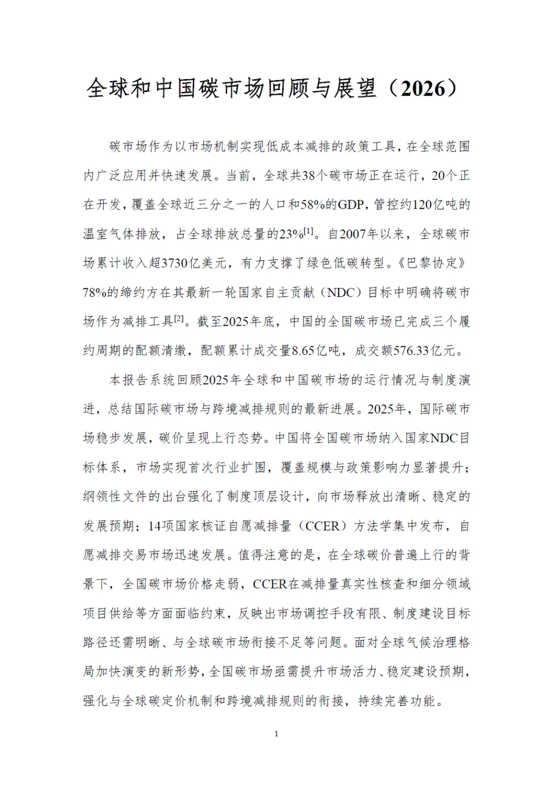 报告丨全球和中国碳市场回顾与展望(2026)(附下载)