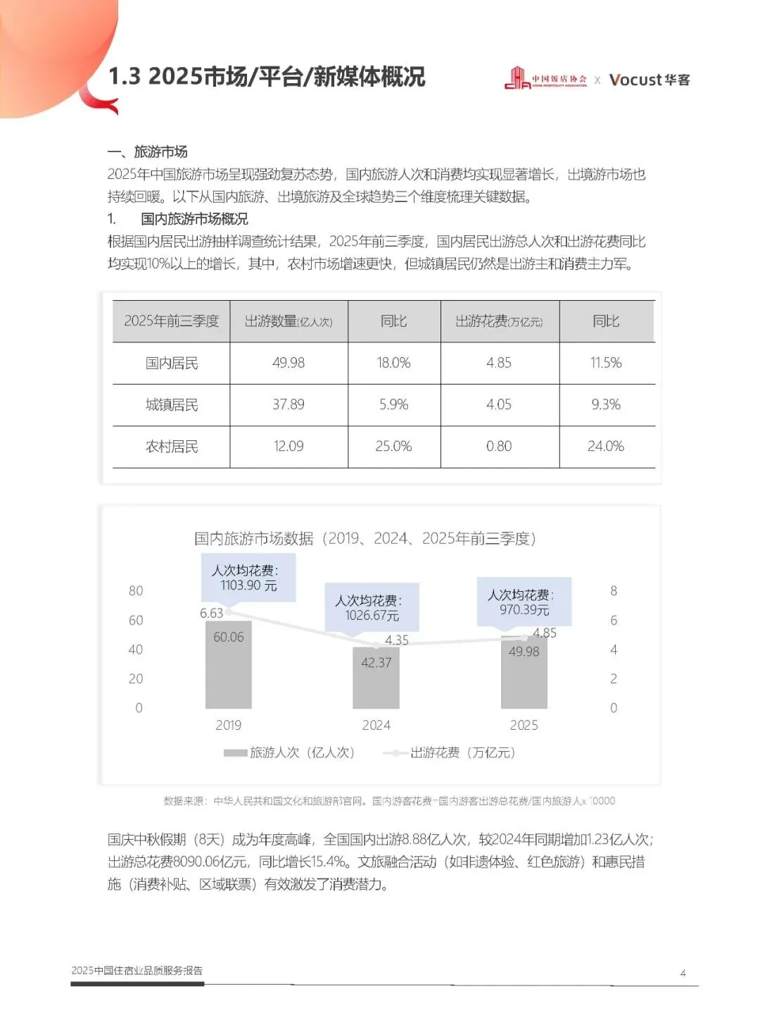 数据显示,2025 年前三季度国内出游人次冲到 49.98 亿,同比暴涨 18%,旅游消费总额也站上 4.85 万亿元的高位。但比数据更热的,是住宿业正在发生的悄悄变革,人们不再满足于 “有张床睡”,而是追着 “有品质的体验” 跑。