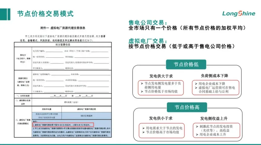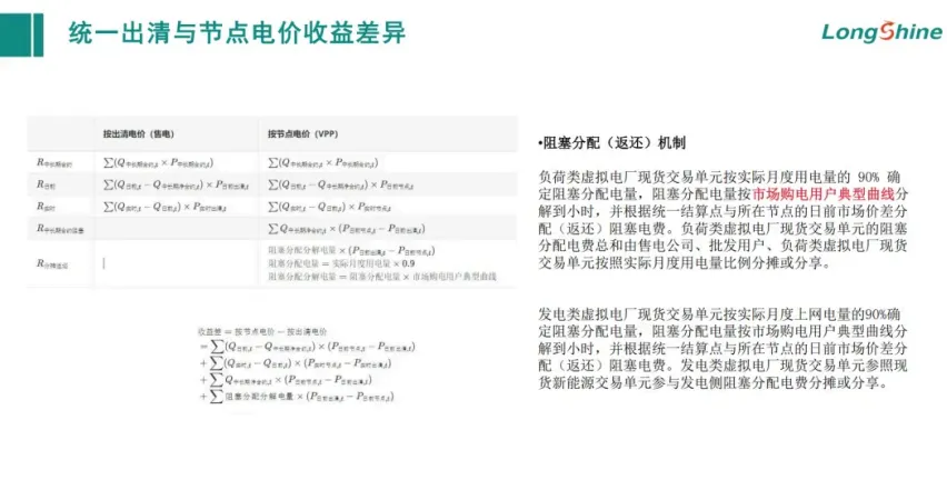 其次,聚焦交易与结算模式:虚拟电厂采用节点电价交易,与售电公司的加权平均电价形成差异,可通过节点供需差异套利;结算方面,明确代理交易的价格区间(-20 至 20 元 / 兆瓦时),费用按实际用电量核算,正负电价对应不同支付方向,同时包含阻塞分配机制。