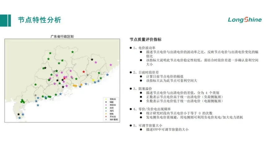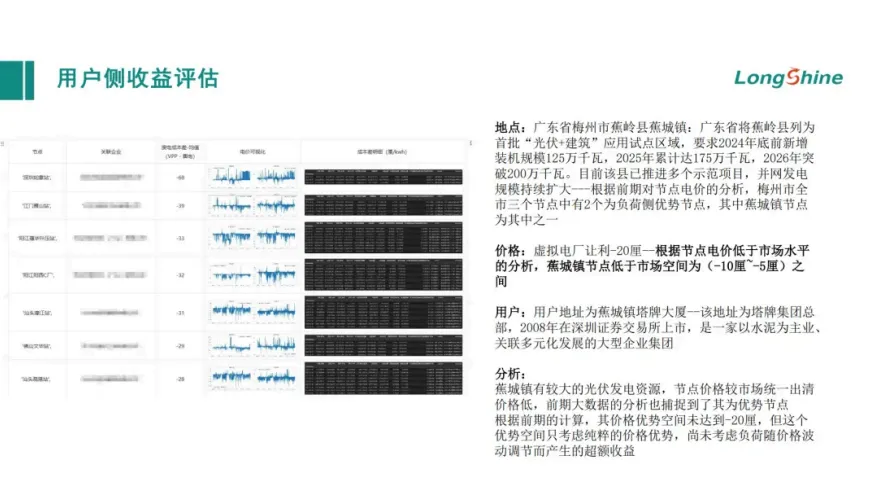再者,分析节点特性与优势案例:通过电价波动率、时段价差等指标评估节点质量,梅州蕉岭县蕉城镇作为优势节点,依托光伏资源与低价优势,结合企业用户需求形成运营场景。