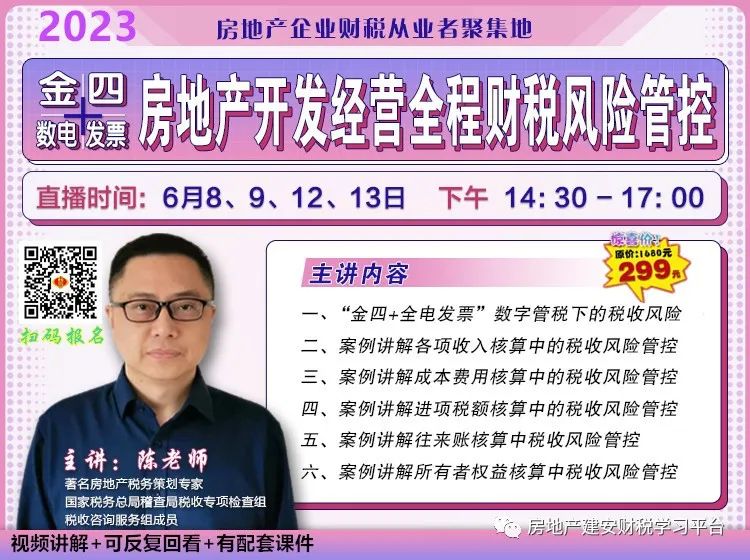 【南京·9月15–16日】陈萍生主讲:“金四”数字管税下房地产建筑业税收风险管控