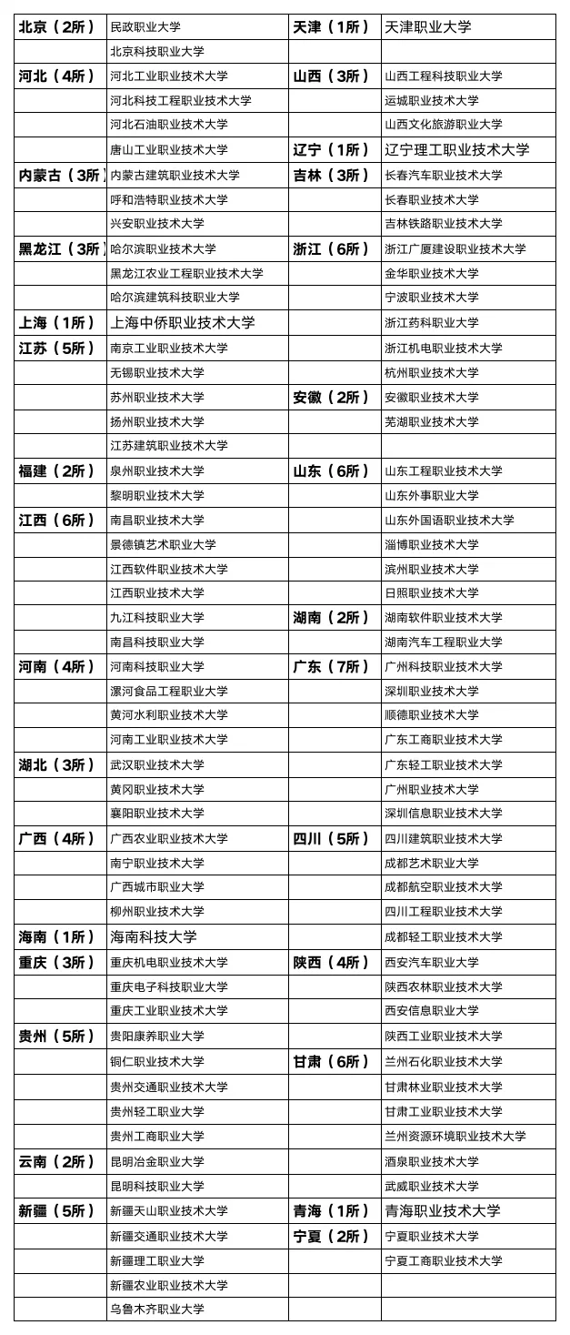102所职业本科名单