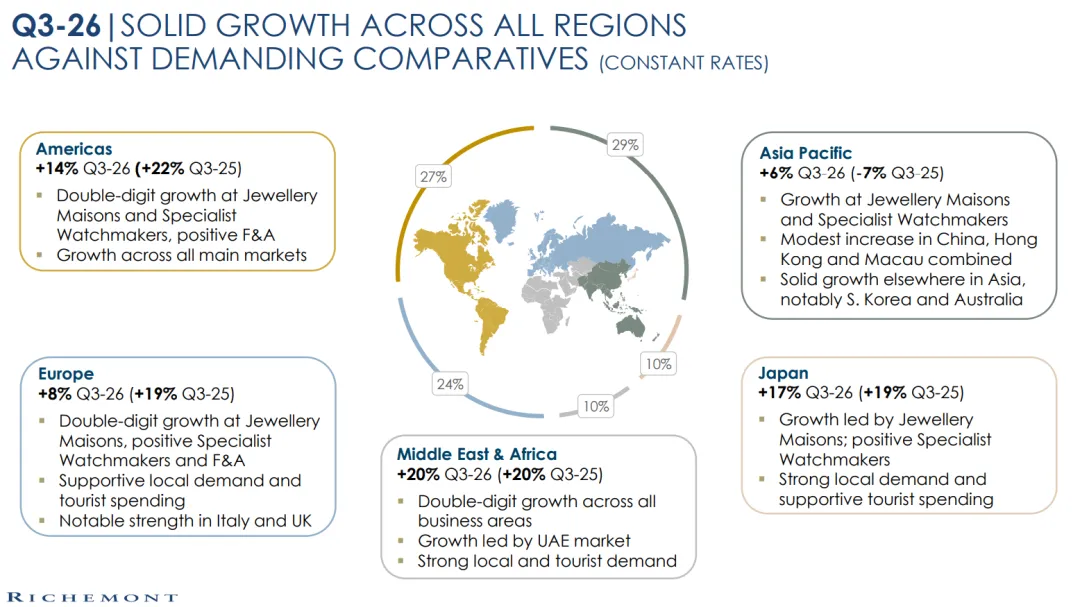 中东地区增长20%——增长由阿联酋市场带动,由本地需求和游客带动。