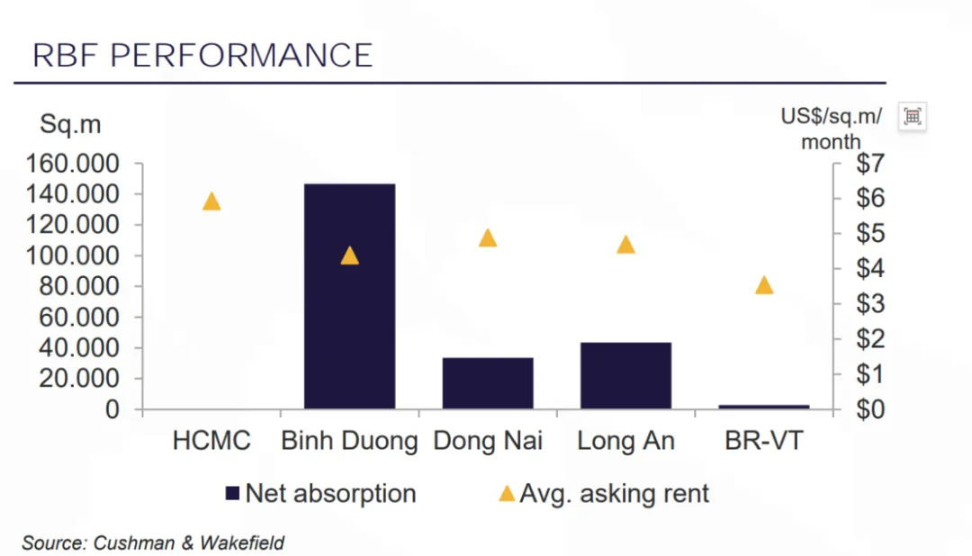 2025年初,由CNC Tech在永福省开发的一个新型标准厂房(RBF)项目已启动,新增约114,000平方米供应。至此,北部重点经济区(NKEZ)的RBF总供应量达到约440万平方米,较2024年第四季度增长3.45%,同比增长17.9%。