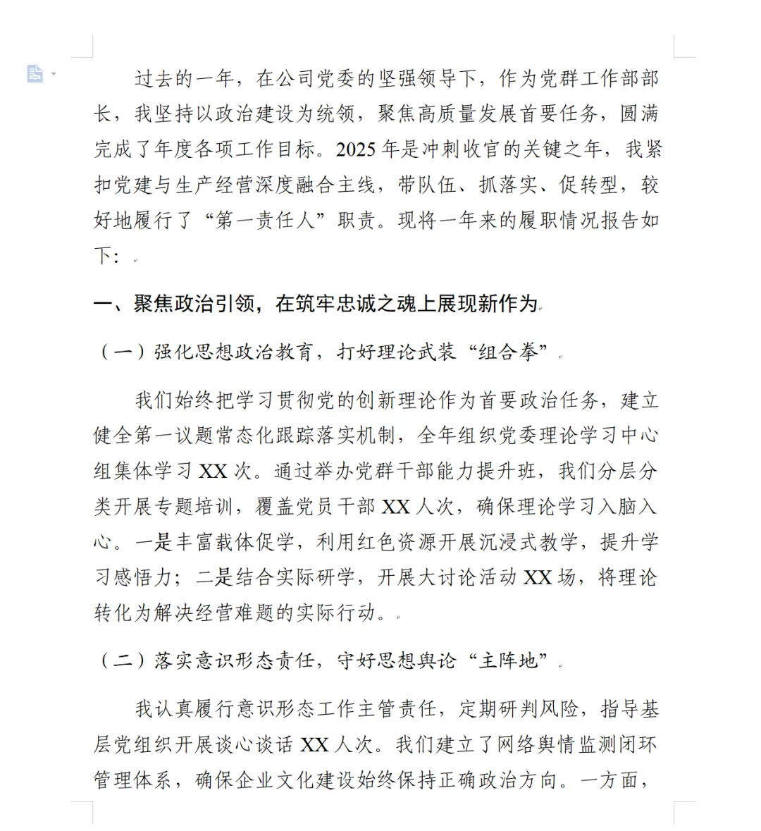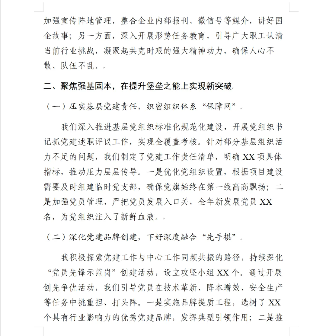 XX国有企业党群工作部部长2025年度述职报告:筑牢堡垒聚合力 赋能发展显担当