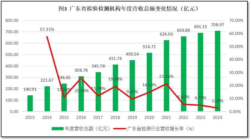 过去12年广东省检验检测机构年度营收总额的变化如图3所示。