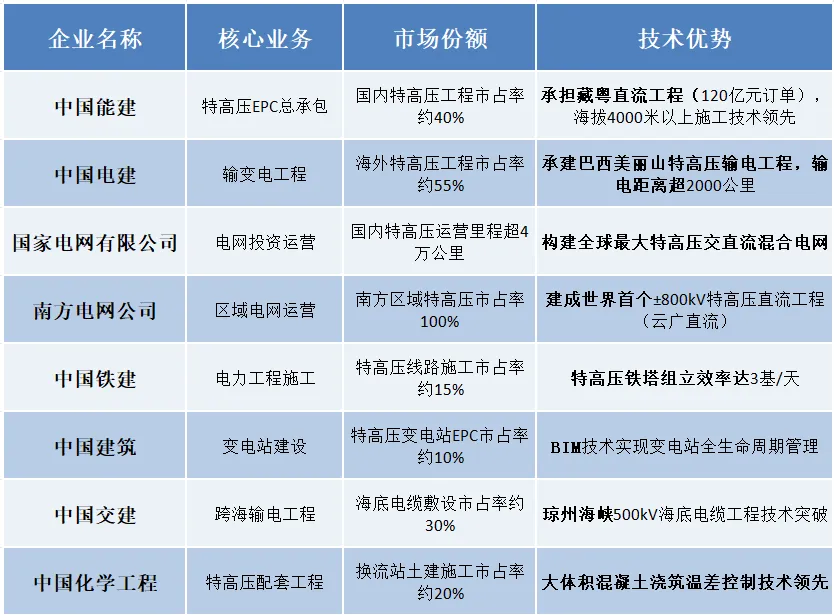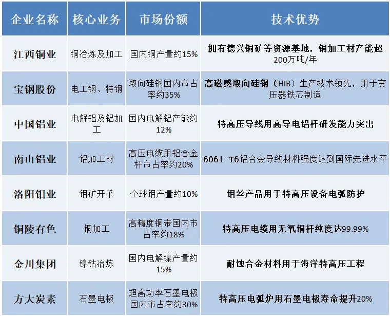 中国特高压及输电网络产业链呈现明显的层级化特征,从上游原材料供应到中游设备制造,再到下游工程建设与运营,各环节均形成了以龙头企业为主导的竞争格局。以下按"环节-企业-竞争力"逻辑展开分析: