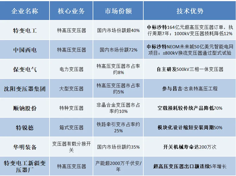 特高压变压器市场集中度极高,特变电工与中国西电合计占据超70%市场份额,且两家企业均通过海外重大项目实现技术输出。