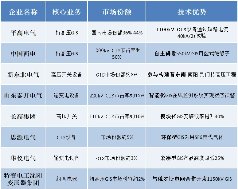 气体绝缘开关设备(GIS)因占地面积小、可靠性高,成为特高压变电站的核心设备。平高电气与中国西电在特高压GIS领域形成双雄争霸格局。