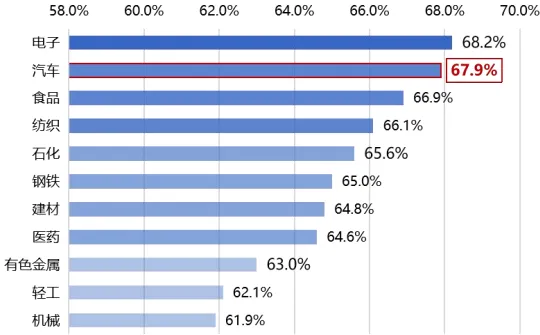 汽车行业数字化基础良好,转型水平位于制造业重点行业前列。截至2025年9月,我国汽车行业两化融合达成度为67.9%,较全国平均水平(64.4%)高出3.5个百分点,仅次于电子行业。关键指标如数字化研发工具普及率高达94.7%,供应链管理、客户服务环节数字化普及率均处于十大重点工业行业前列。然而,转型水平不均,大型整车企业数字化程度高于零部件企业,19.3%的整车企业达到创新突破阶段,是零部件企业的近两倍。