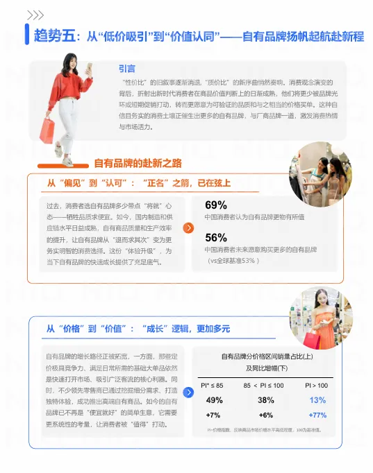 从“低价吸引”到“价值认同”随着供应链成熟和消费者认知转变,自有品牌从“将就选择”变为“明智之选”,通过基础大单品和高端差异化商品满足多元需求,与厂商品牌协作共生。