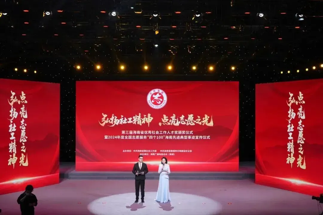 12月3日晚,海南广播电视总台演播厅内暖意涌动、掌声阵阵,第三届海南省优秀社会工作人才奖颁奖仪式暨2024年度全国志愿服务“四个100”海南先进典型事迹宣传仪式在此隆重举行。