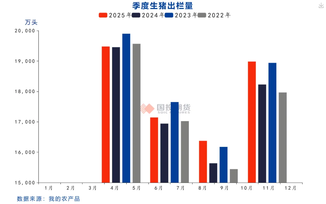 从生猪存栏量来看,2025年末生猪存栏较上年度小幅增加224万头,主要由于此前行业能繁母猪持续恢复,导致生猪出栏量处于上升势头。涌益咨询数据显示,2024年2月至2025年8月期间,行业能繁母猪存栏量处于持续上升势头。由于能繁母猪存栏4个月产仔、10个月出栏的生产周期特性,预计中期生猪存栏量仍处在相对偏高水平。