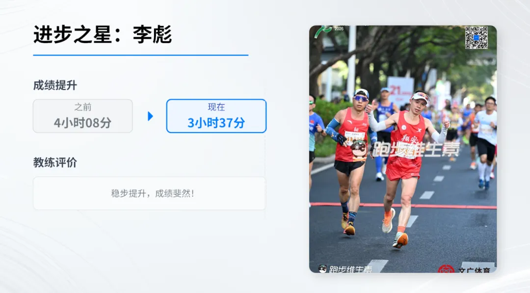 李彪也交出了一份亮眼答卷,成绩提升近 40 分钟,咱们队的平均进步能达到 5.2 分钟,他的功劳可不小。看得出来他潜力十足,明年绝对能再创佳绩。