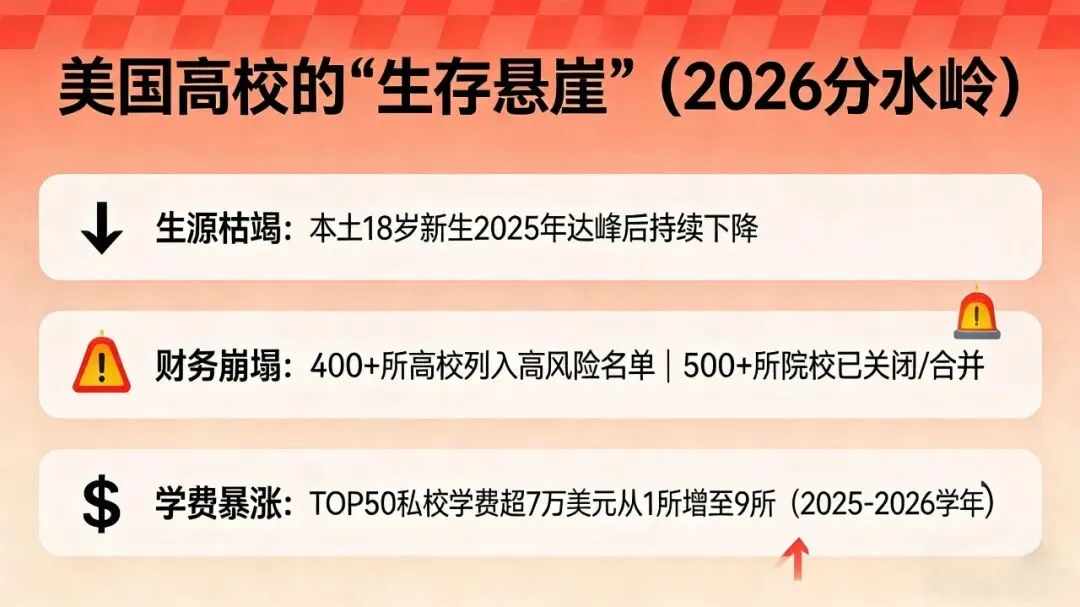 2026年,将成为美国高等教育一个历史性的分水岭。其内部正面临一场由人口结构引发的根本性生存危机: