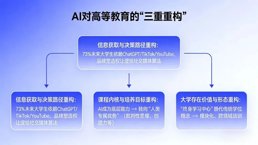 AI不仅是讨论的背景,更是直接驱动高等教育变革的第一动力。它从三个层面完成了对传统模式的“重构”:
