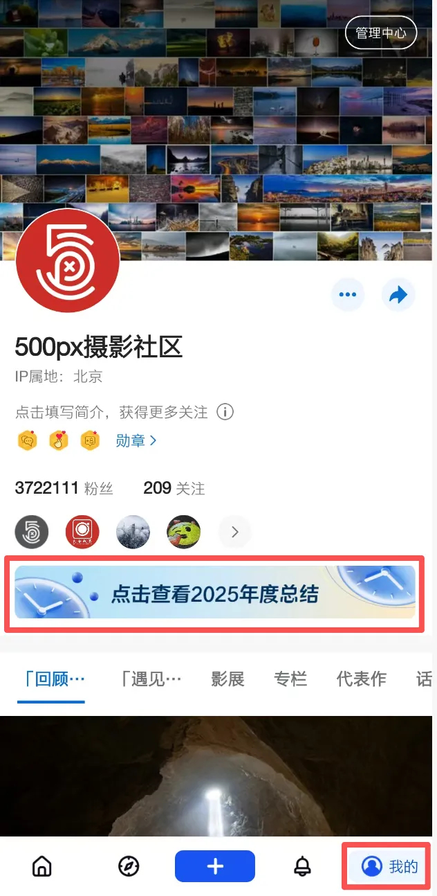 点击个人主页-报告按钮即可查看你的2025年度摄影报告