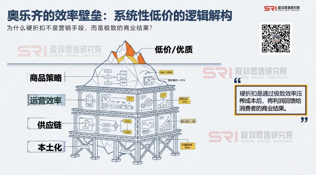 对于许多中国企业,“折扣”是清理库存的营销手段或抢占市场的竞争武器,本质是流量思维。而对于奥乐齐,“折扣”是其整个商业模式运转的最终结果,是效率思维。前者“赔本赚吆喝”,不可持续;后者“在赚钱的同时提供最低价”,是坚固的商业模式。