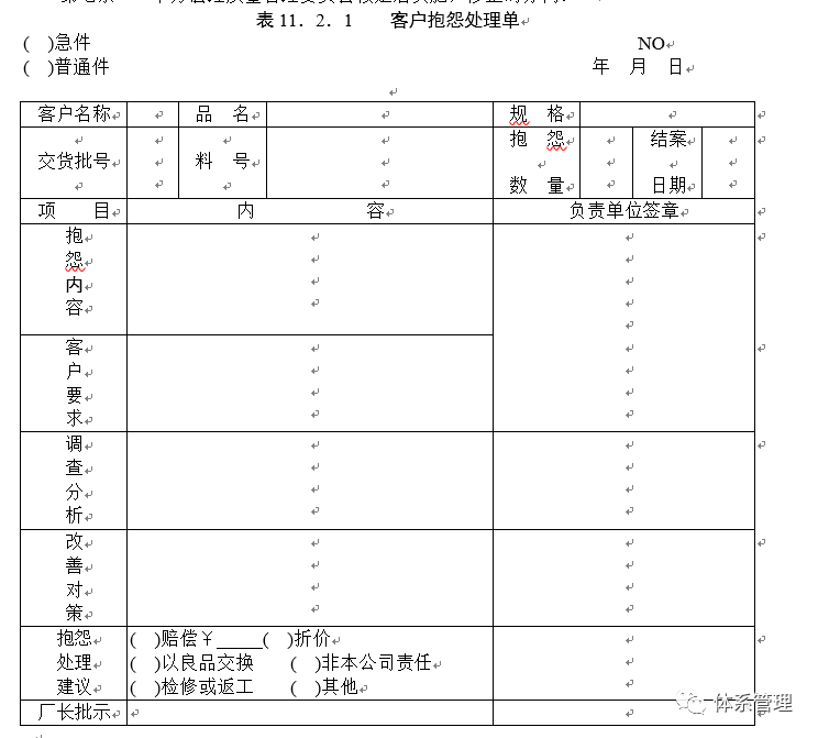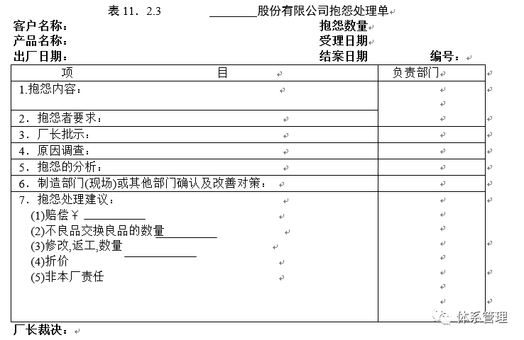 (四)会同有关单位,对客户抱怨提出处理建议,经厂长核准后,由业务部答覆客户。
