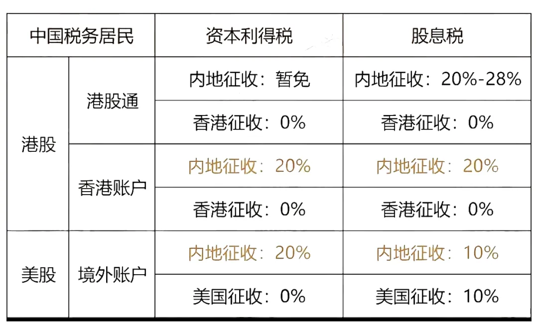 规则:这是指你卖出股票获利后需要缴纳的税。好消息是:作为非美国税务居民,你无需缴纳资本利得税。 但是:根据中国税法,你有义务就全球所得自行申报并缴纳个人所得税。资本利得属于“财产转让所得”,理论上适用20%的税率。实际操作中,由于征管技术原因,个人投资者主动申报并缴纳的情况较少,但这是你应当知晓的法律义务和潜在风险。