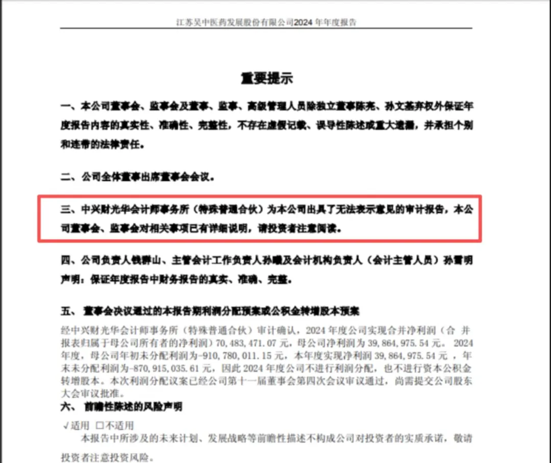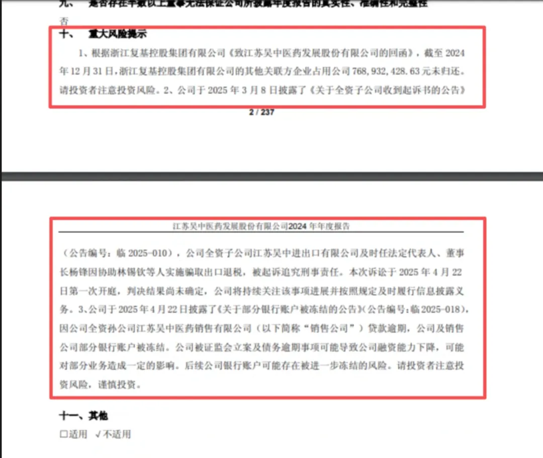 就在25年年底,A股“江苏吴中”这颗雷炸的人真心疼呀,6.74万股东遭了殃,股价跌超八成还退市,财务造假坑惨,大伙儿满心期待终成一场空呀。投资者们花几分钟扫一眼江苏吴中2024年财报和审计报告,就能避开这颗大雷。审计直接给了无法表示意见、明晃晃的风险信号,12.82亿应收款里,7.69亿被实际控制人占用。剩下5亿多也全逾期,收不回,子公司还是2.42亿,骗税案证监会都立案调查了,这些致命问题早写在报告里,多看一眼就少点损失啊。