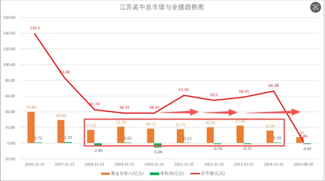 2021年市值61.05亿,净利润仅0.23亿,PE超260倍,2024年市值66.38亿,营收15.99亿,净利润0.70亿,2019年后营收一直在20亿左右。净利润也在亏本边沿挣扎,在没有业绩支撑的情况下,总市值一度被盲目跟风的投资者炒到接近翻番。
