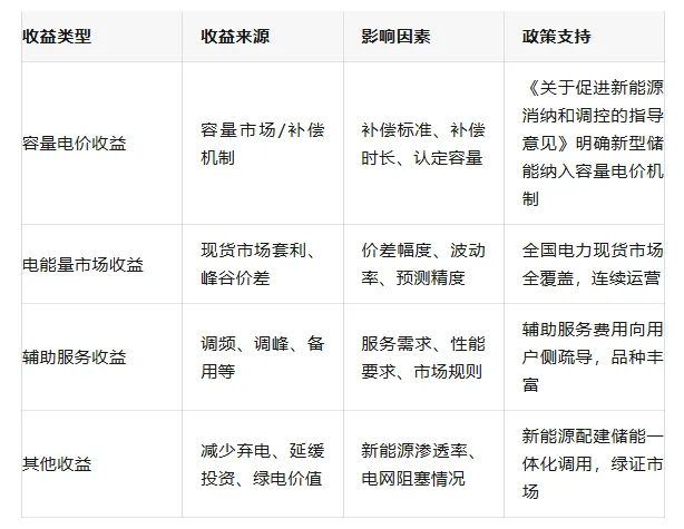 表:储能项目收益构成及影响因素