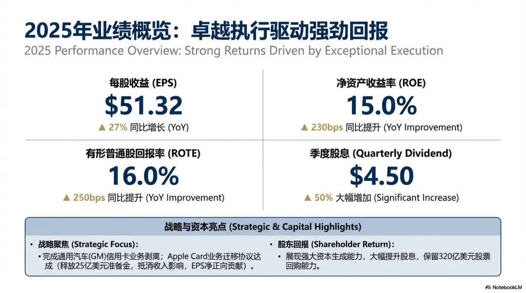 更戏剧性的细节在于:CFO提到,Apple Card转让反而对本季度每股收益贡献了约0.46美元。看似不合逻辑的“甩包袱还赚钱”,本质是会计处理的结果——高盛此前为潜在坏账风险计提了大量拨备,业务出售后部分拨备得以释放回利润表。虽然这属于一次性因素,但它传递出的战略信号更关键:高盛愿意为长期的“聚焦与稳态”做出取舍。